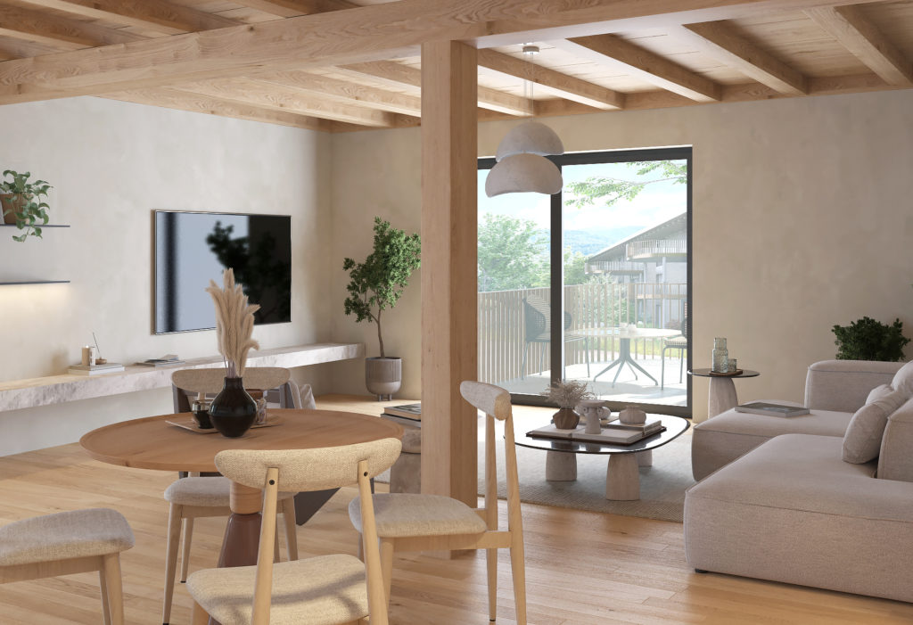 Les Saugeraies propose une diversité de logements adaptés à toutes les générations et à différents modes de vie. Famille, jeune actif ou senior, chacune et chacun trouvera un chez-soi chaleureux, moderne et durable. De plus, la végétation extérieure et la vue sur les sommets environnants offre un cadre paisible et ressourçant.